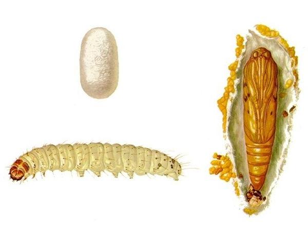 Una ves alcanzada la dimensión de 10-15 mm, la larva se empupa en los mismos alimentos infestados, transformandose en crisálida.